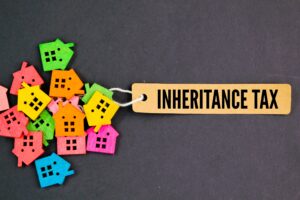 house shape and a paper tag with the words Inheritance Tax. concept of inheritance tax